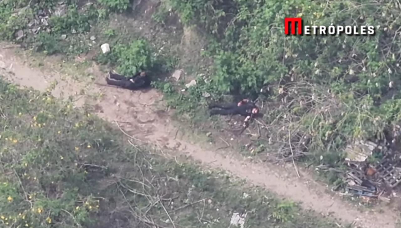 As filmagens mostram grupos de criminosos tentando se esconder entre árvores e barrancos, enquanto equipes do Bope tentavam avançar. Em determinado momento, um policial é ferido e colegas fazem o resgate sob rajadas de fuzil disparadas a curta distância.