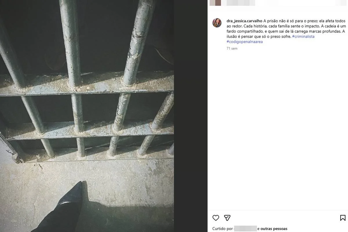 Em um post, a advogada disse: “A prisão não afeta apenas quem está atrás das grades; atinge todos ao redor. A cadeia é um fardo compartilhado, e quem sai dela carrega marcas profundas. A ilusão é pensar que apenas o preso sofre.”