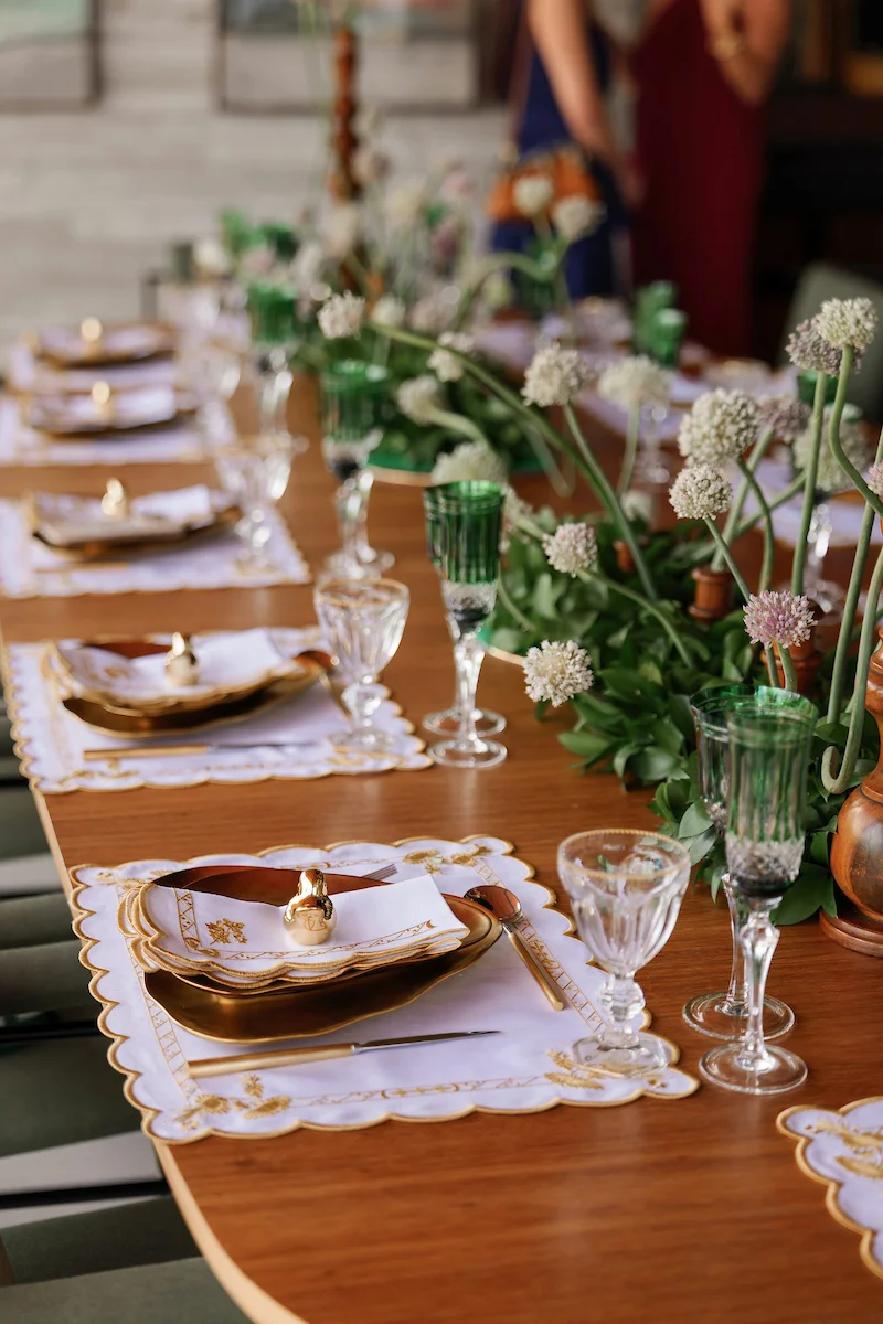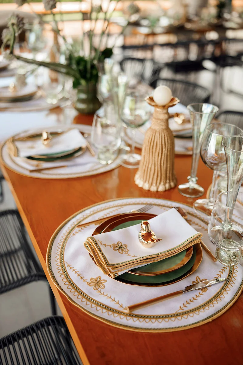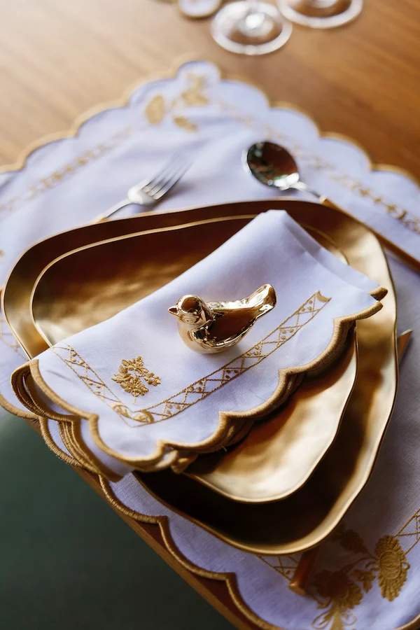 Sensibilizada e agradecida pela atitude das amigas, Caroline exerceu o dom da pintura e personalizou taças de vinho e espumante para presenteá-las. “Quando as meninas me falaram desse almoço, eu pensei: ‘o que posso fazer de especial para elas? Tem que ser algo que só eu possa dar’. Então pintei 12 taças para cada uma delas. Hoje, juntamos todas para usar aqui. Foi uma forma de homenageá-las com o que eu pudesse dar de melhor, que é o meu tempo”, diz a aniversariante.