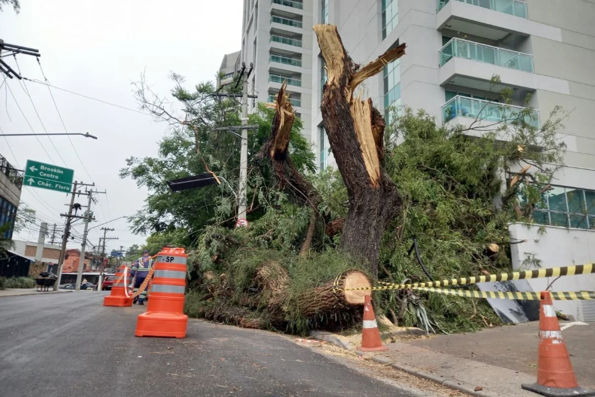 Estragos pós-apagão na Avenida Santo Amaro, zona sul de São Paulo-apagão na Rua 9 de Julho, zona sul de SP