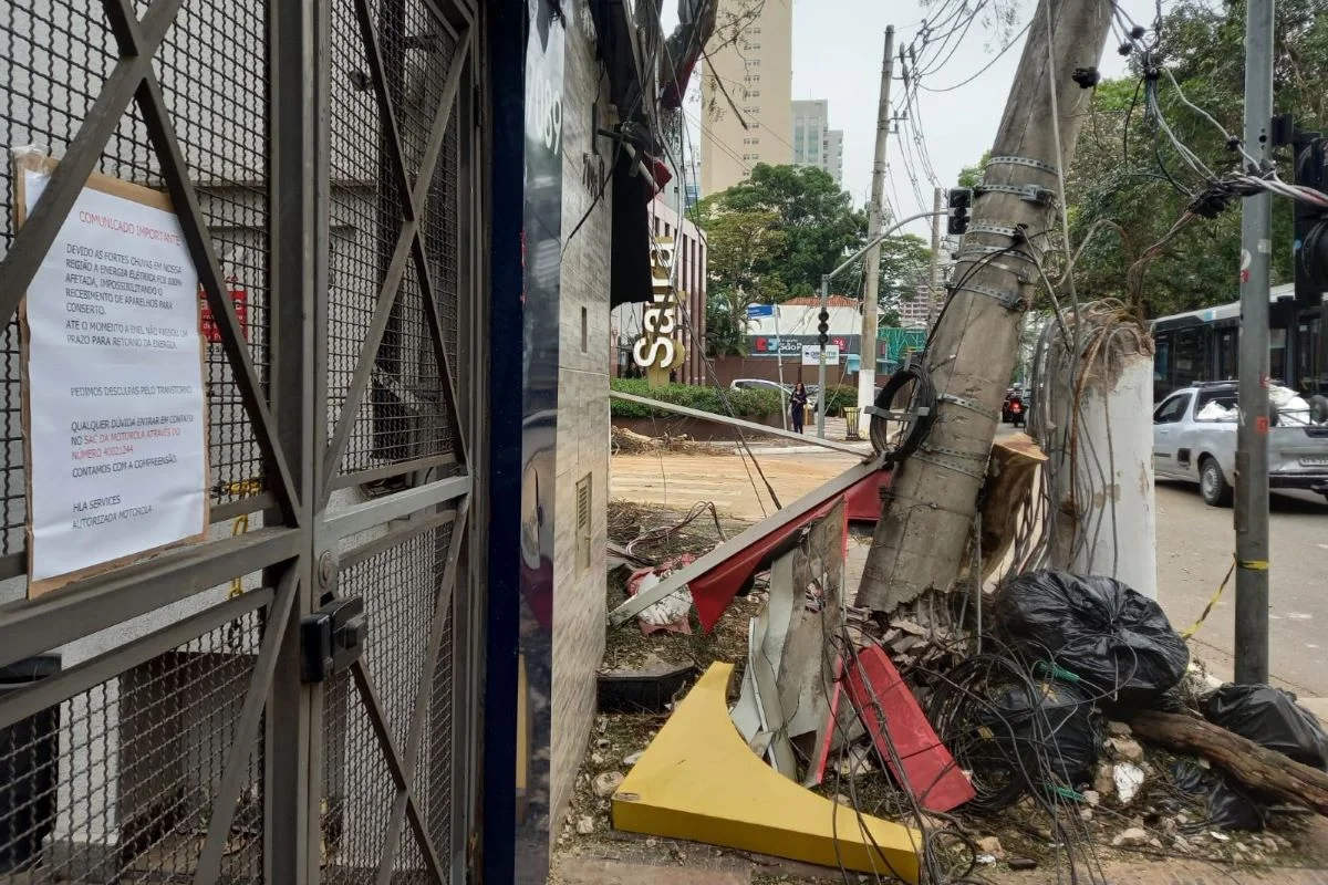 Estragos pós-apagão na Avenida Santo Amaro, zona sul de São Paulo