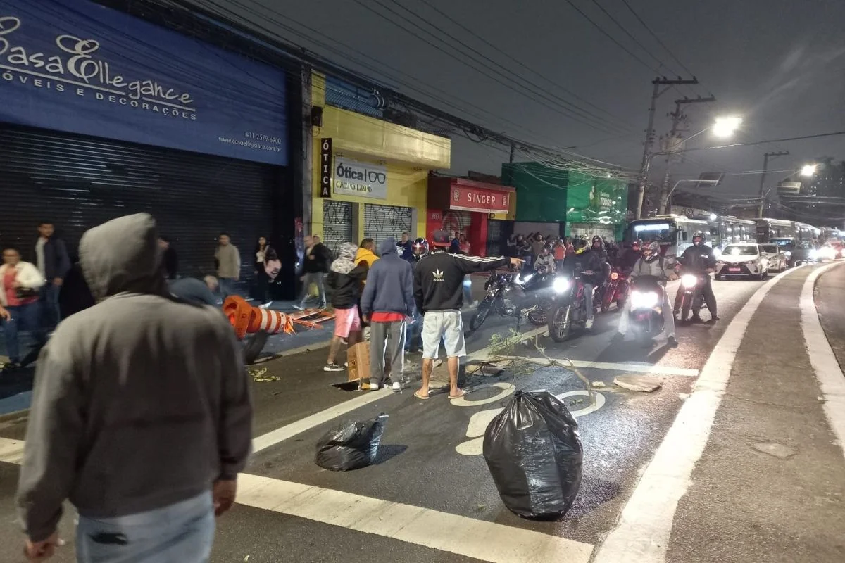 Protesto na Estrada do Campo Limpo, zona sul de SP