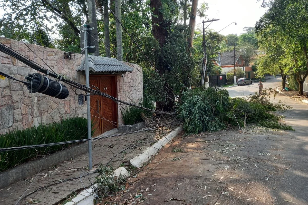 Fios e árvore na Rua Dr. Paulo Aires Neto, no Jardim Marajoara, na zona sul de SP