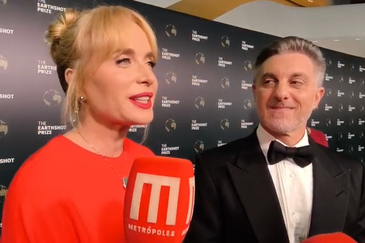 Angélica e Luciano Huck chegaram juntos ao green carpet do Earthshot Prize Summit, no Rio de Janeiro, onde a cerimônia foi realizada. Luciano foi o apresentador oficial do prêmio e, antes de assumir o palco, falou rapidamente com a imprensa ao lado da esposa.