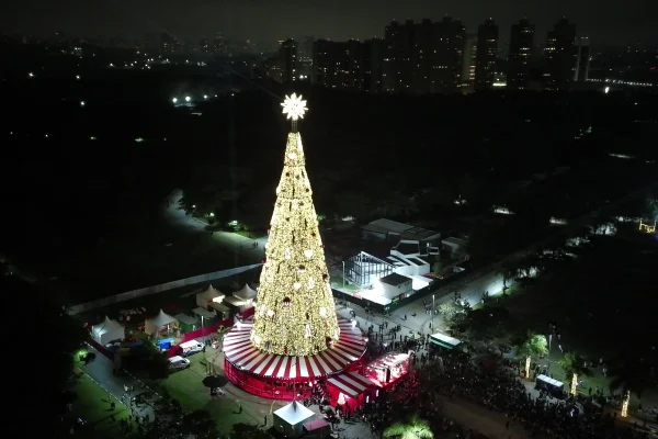 Uma árvore de Natal de 55 metros feita de material reciclado e com um carrossel para a diversão dos visitantes foi inaugurada neste sábado (15/11), no Parque Villa-Lobos, na zona oeste de São Paulo. A previsão é de que 1,6 milhão de pessoas compareceram ao local até o começo de 2026, quando será desmontada.