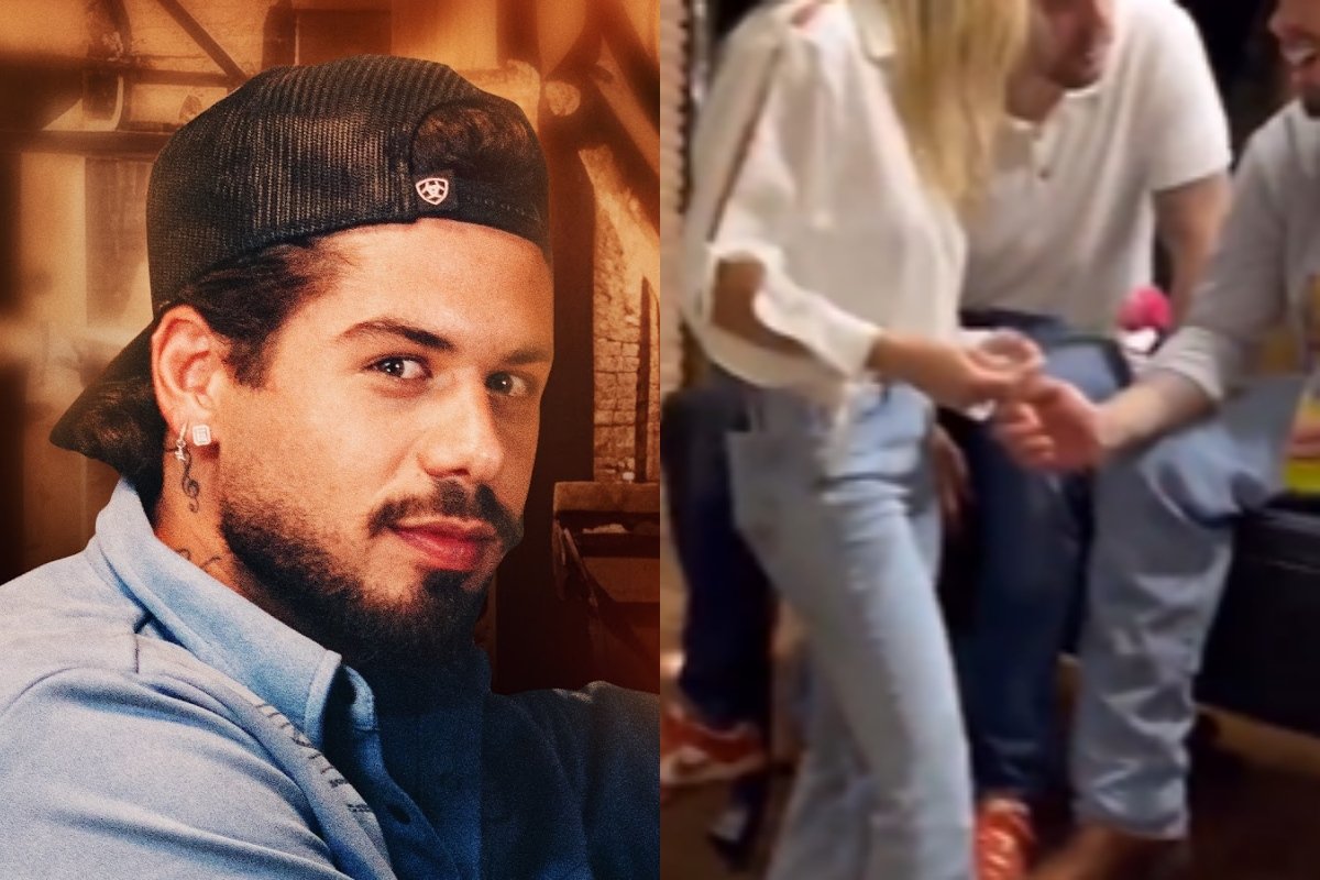 Zé Felipe acaricia mão de mulher em festa de Ana Castela