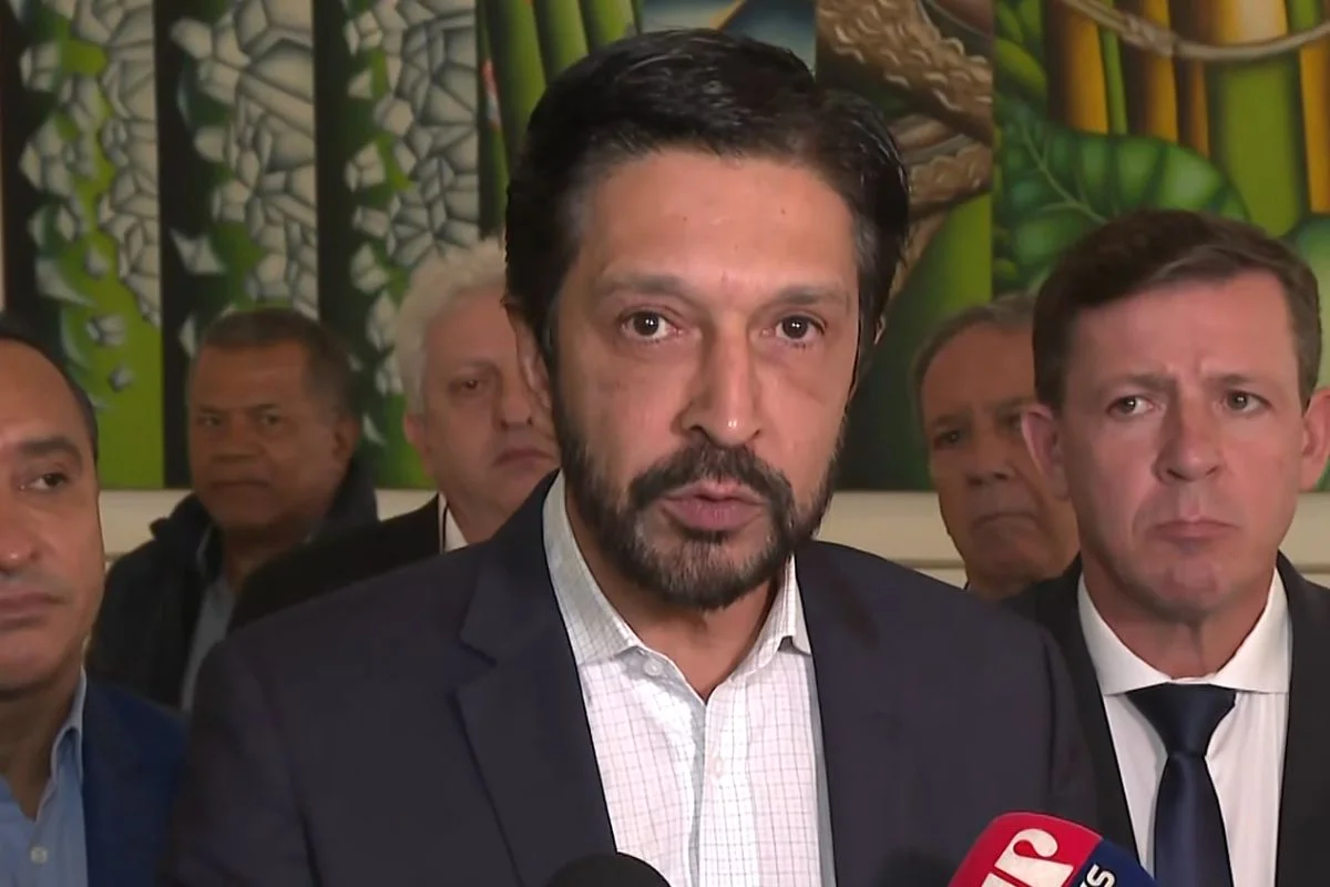 O prefeito Ricardo Nunes anuncia pacote de obras em SP