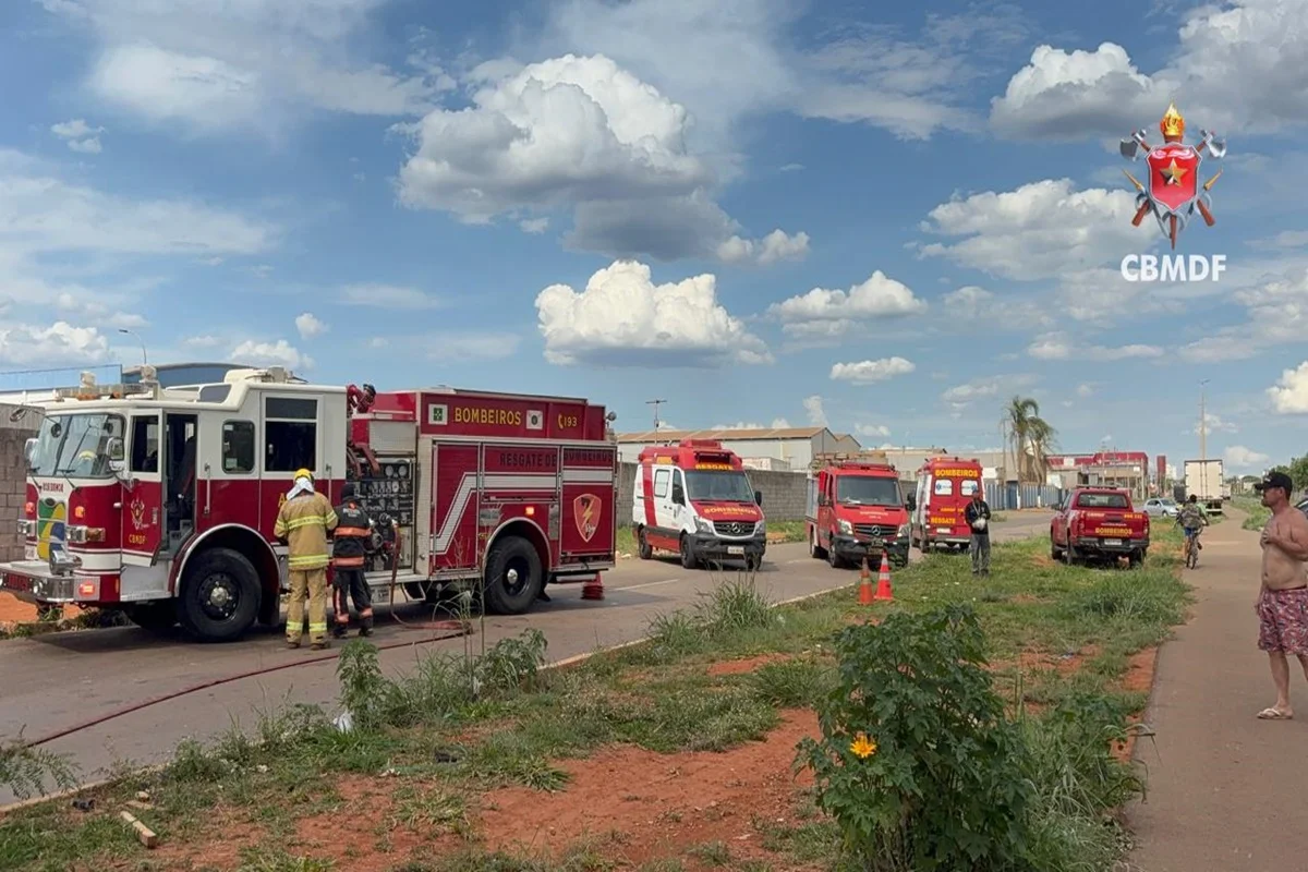 A ocorrência começou às 14h14 deste domingo (16/11) e mobilizou oito viaturas do CBMDF, sendo seis delas específicas para combate direto ao fogo. Os bombeiros enfrentaram três focos de incêndio no terreno e precisaram proteger edificações vizinhas, caminhões estacionados e dezenas de pneus armazenados no local.