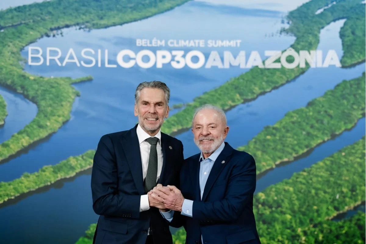 Primeiro-Ministro do Reino da Noruega, Jonas Gahr Støre, e presidente Luiz Inácio Lula da Silva na COP30