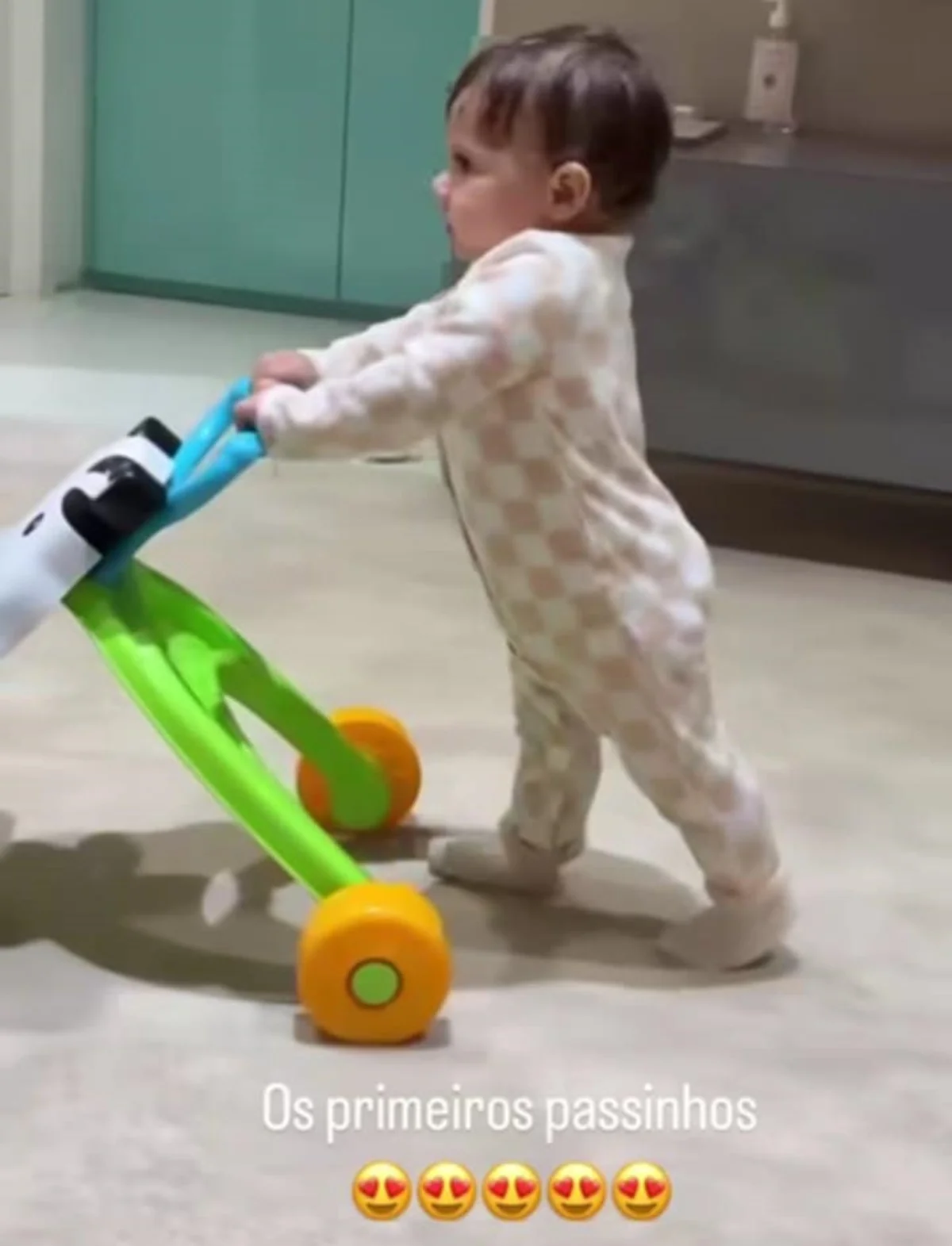 Helena, filha de Amanda Kimberlly e Neymar, deu seus primeiros passos e foi tudo filmado