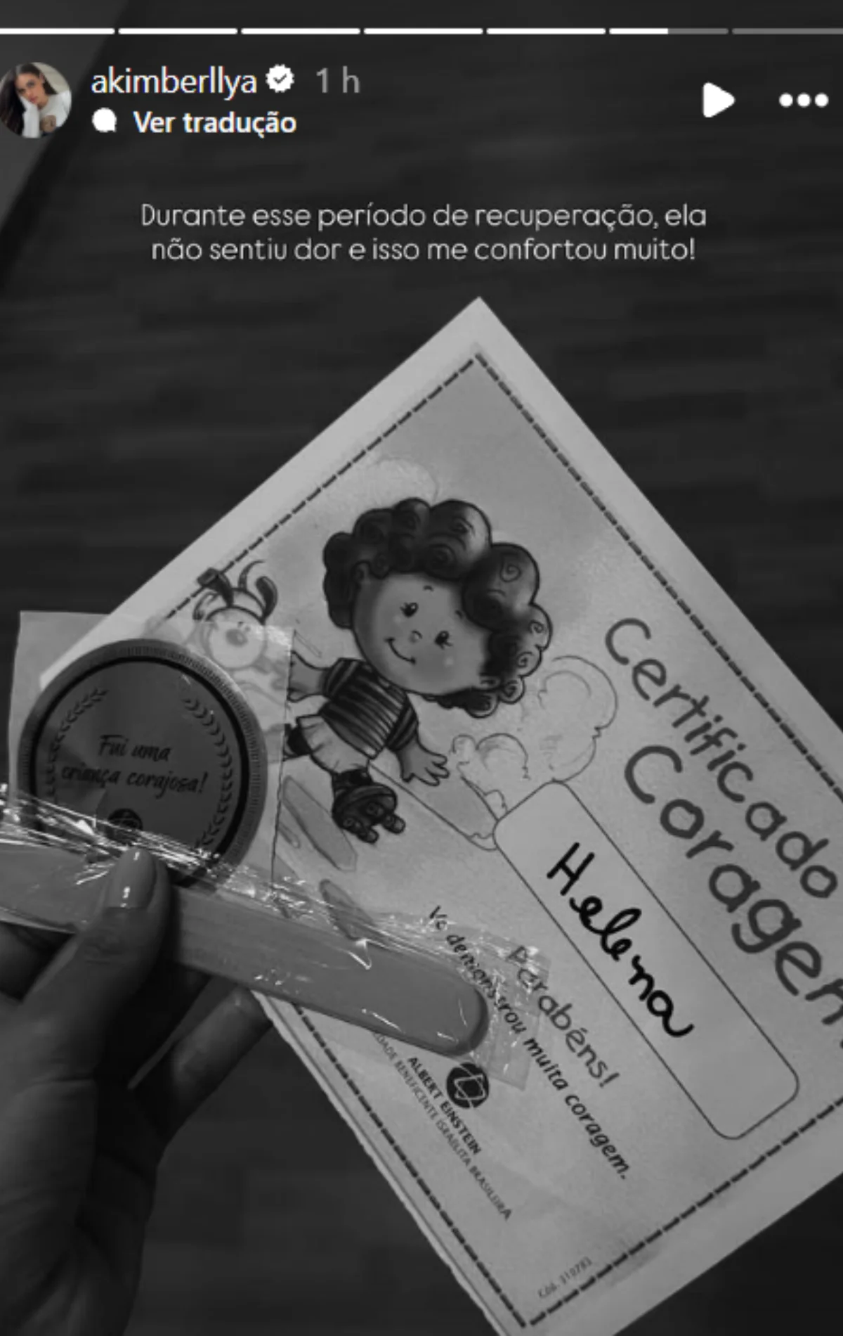 Amanda relatou que o atendimento foi bem-sucedido e atualizou o estado de saúde da filha. “Graças a Deus, ocorreu tudo bem: o ligamento do dedo foi feito, e ele está no lugar, reagindo bem aos medicamentos”, disse, tranquilizando os seguidores.