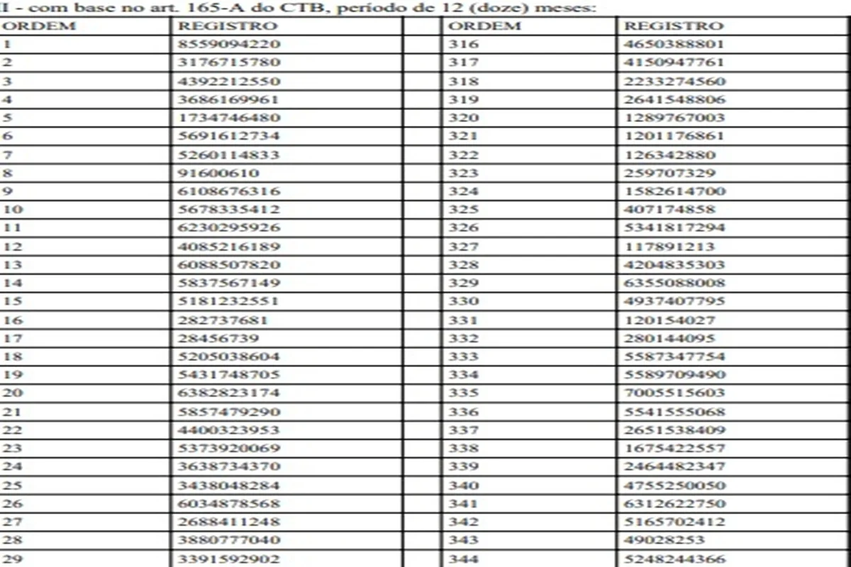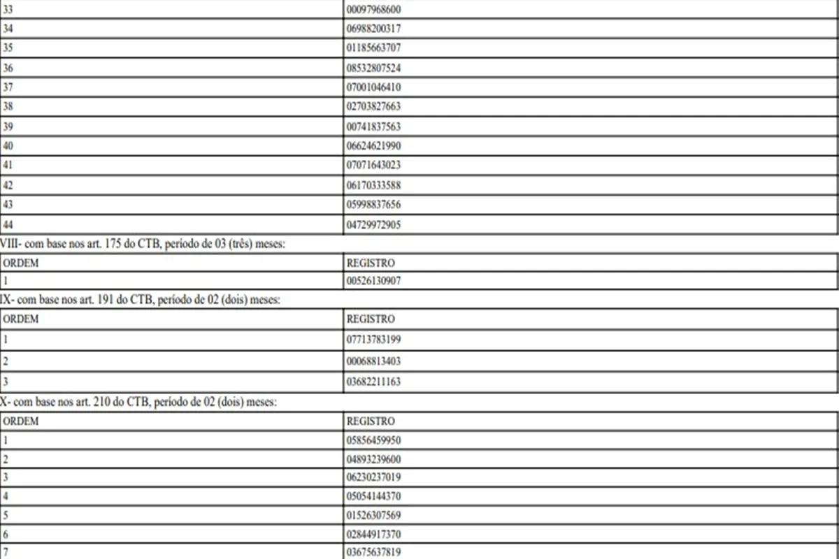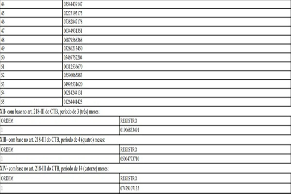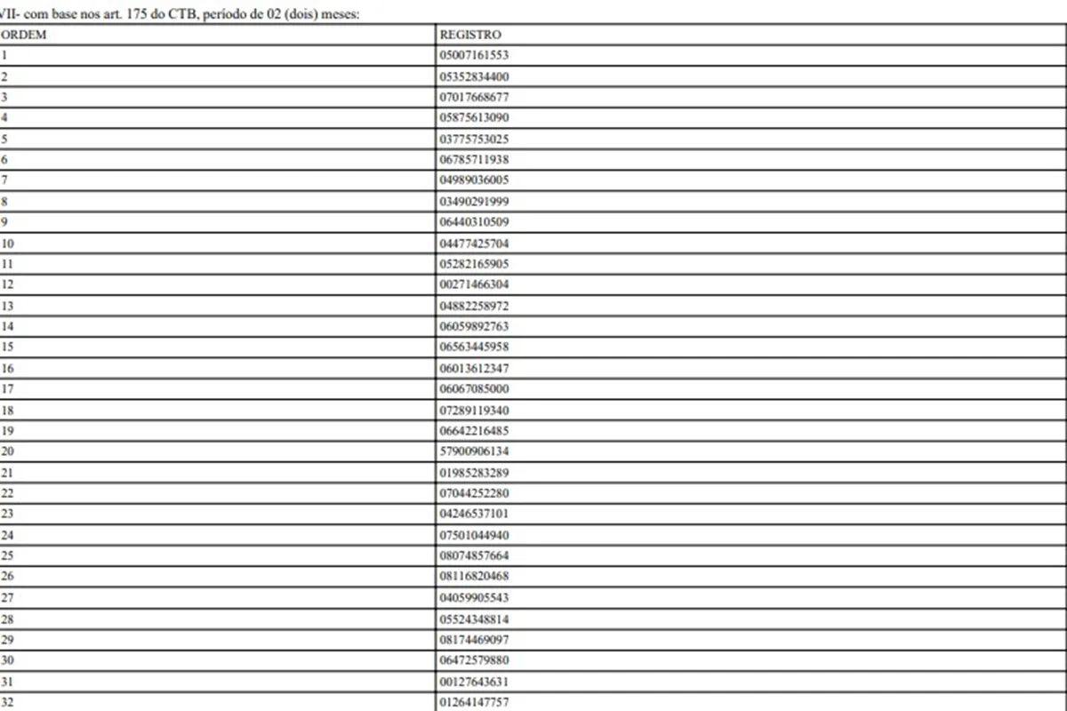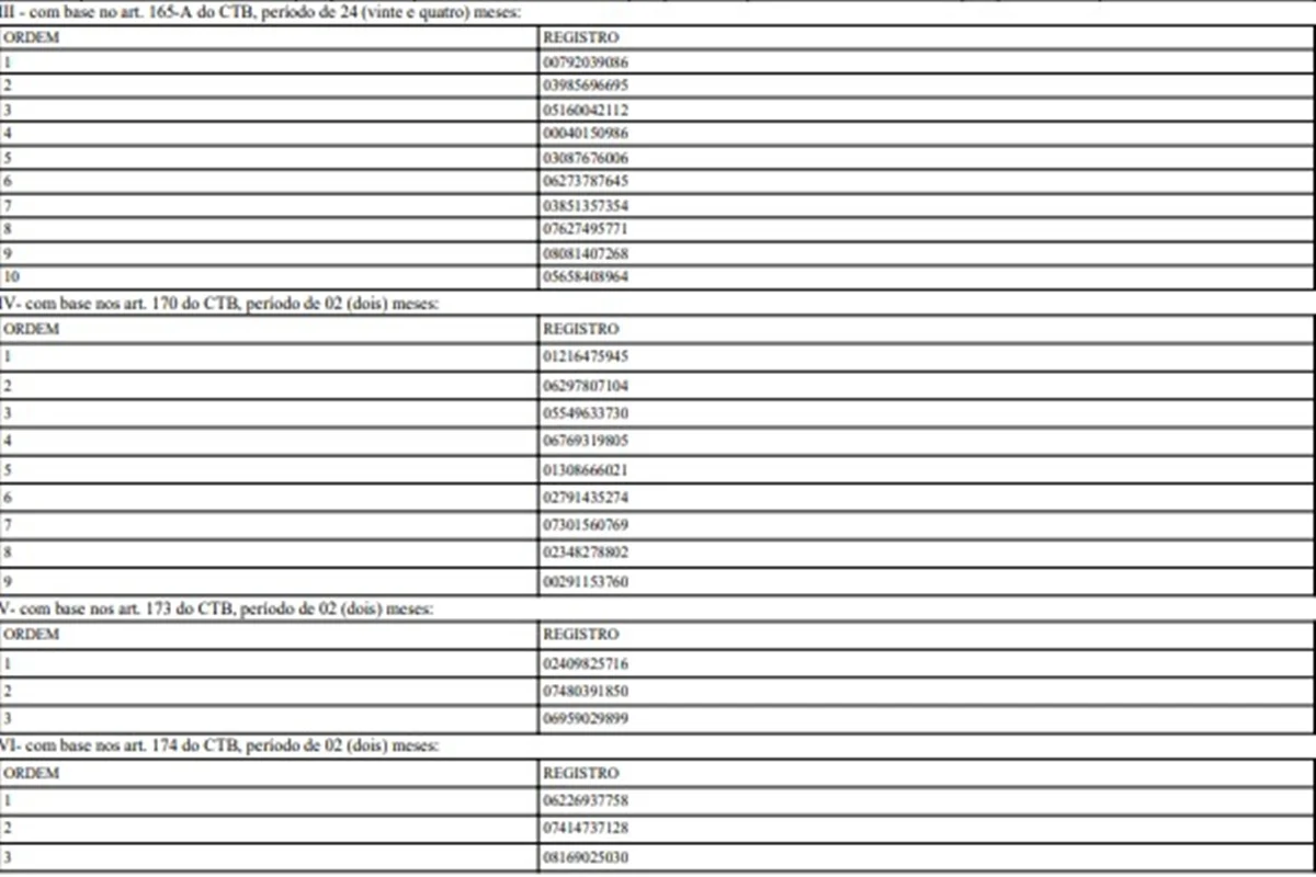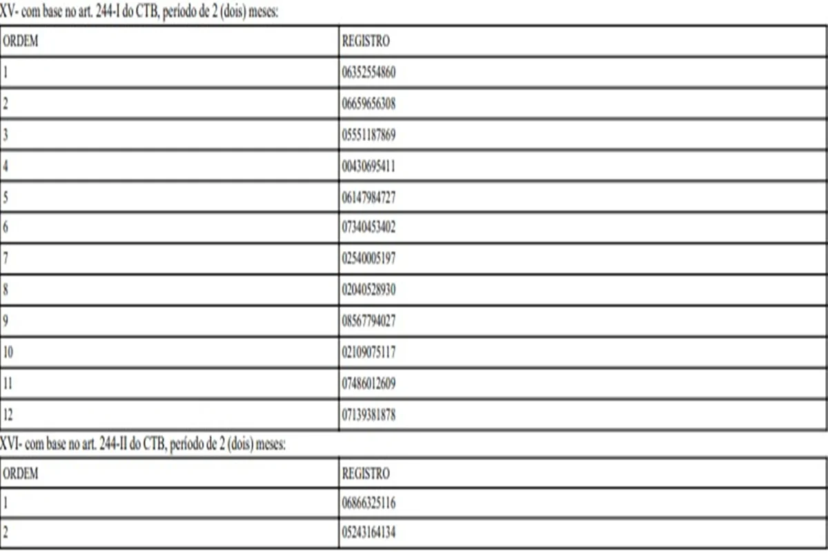 O Departamento de Trânsito do Distrito Federal (Detran-DF) publicou, nesta quarta-feira (12/11), a lista com o número do registro de motoristas que estão proibidos de dirigir. A divulgação foi feita por meio da Instrução nº 1.505, de 7 de novembro de 2025, e inclui mais de 1.500 registros.