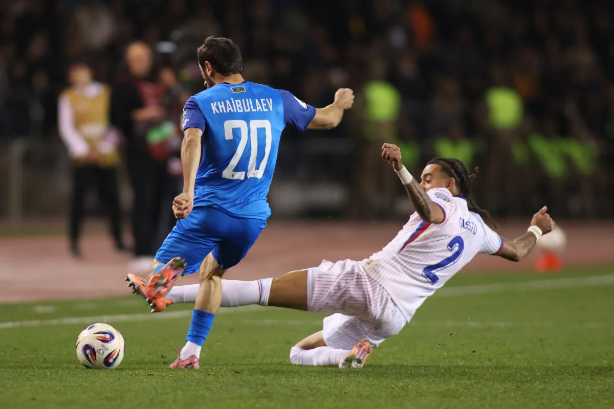 O Azerbaijão ameaçou a invencibilidade da França. Logo no início da partida, aos três minutos do primeiro tempo, Dashdamirov recebeu um ótimo passe na esquerda e tocou rasteiro para Dadashov marcar o primeiro gol do jogo.