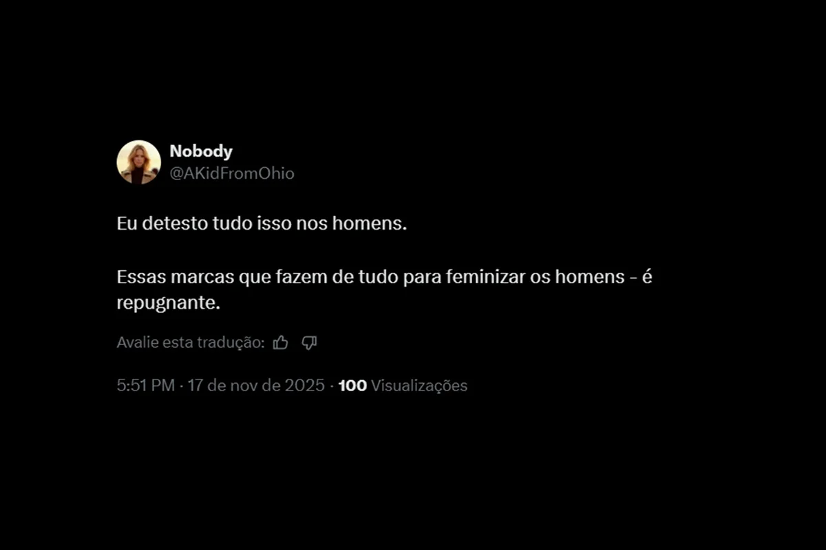 “As marcas fazem de tudo para feminizar o homem”, afirmou um internauta. Outros comentários seguem no pensamento de que a cor afetaria a masculinidade, inclusive com uma usuária afirmando que seu marido “nunca usaria nem uma toalha rosa”.