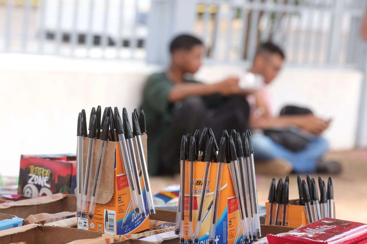 Empreendedores aproveitam a oportunidade para faturar vendendo canetas na porta do local de prova