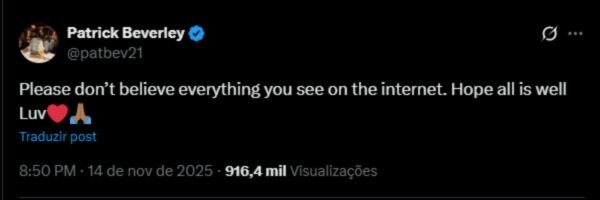Na sexta-feira (14/11), Beverley se manifestou em sua conta oficial no X: