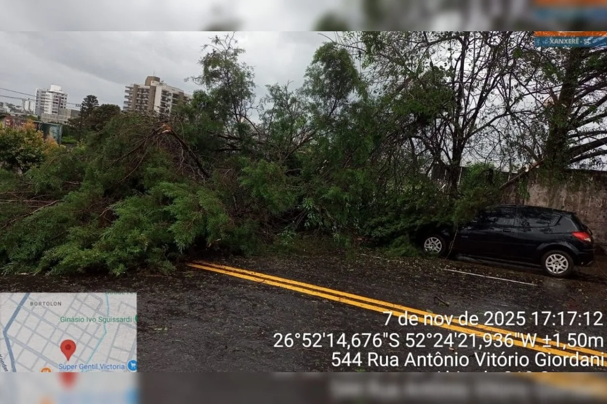 Em Caibi, no interior, os ventos ultrapassaram 85 quilômetros por hora. Já em Dionísio Cerqueira, as chuvas provocaram estragos em 60 casas, com uma sendo completamente destruída pela força dos ventos.