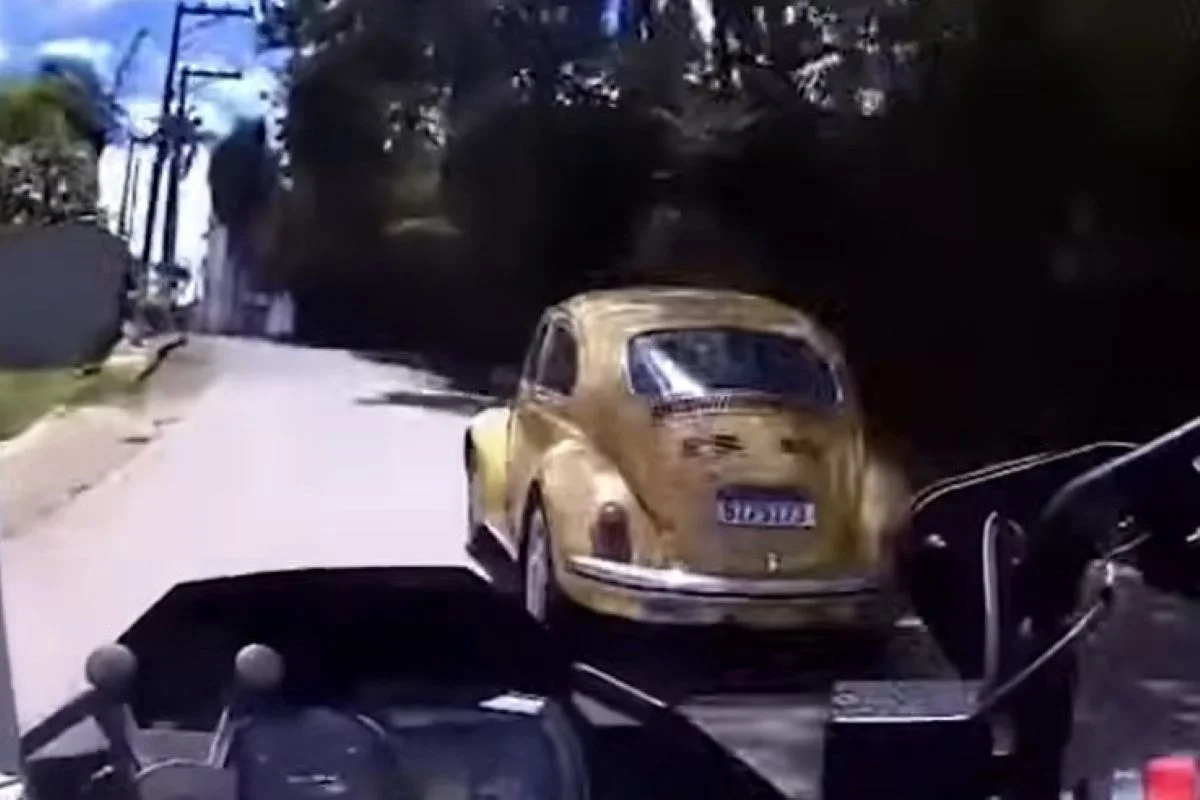 O criminoso que furtou o fusca amarelo em São Lourenço da Serra, na Grande São Paulo, protagonizou uma fuga cinematográfica na manhã dessa quarta-feira (19/11). A perseguição, registrada pela câmera de um policial que estava em uma moto, mostra que o carro atingiu mais de incríveis (para um fusca) 140 km/h. O vídeo completo foi cedido ao Metrópoles pela Tubenettv. Assista.