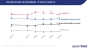 No segundo cenário, com Michelle Bolsonaro (PL), Lula mantém a dianteira, com 31% contra 18% da ex-primeira-dama. Ratinho Júnior tem 10%, Ciro Gomes, 9%, e Romeu Zema e Ronaldo Caiado registram 5%, cada. Indecisos somam 5%, e brancos/nulos, 16%.