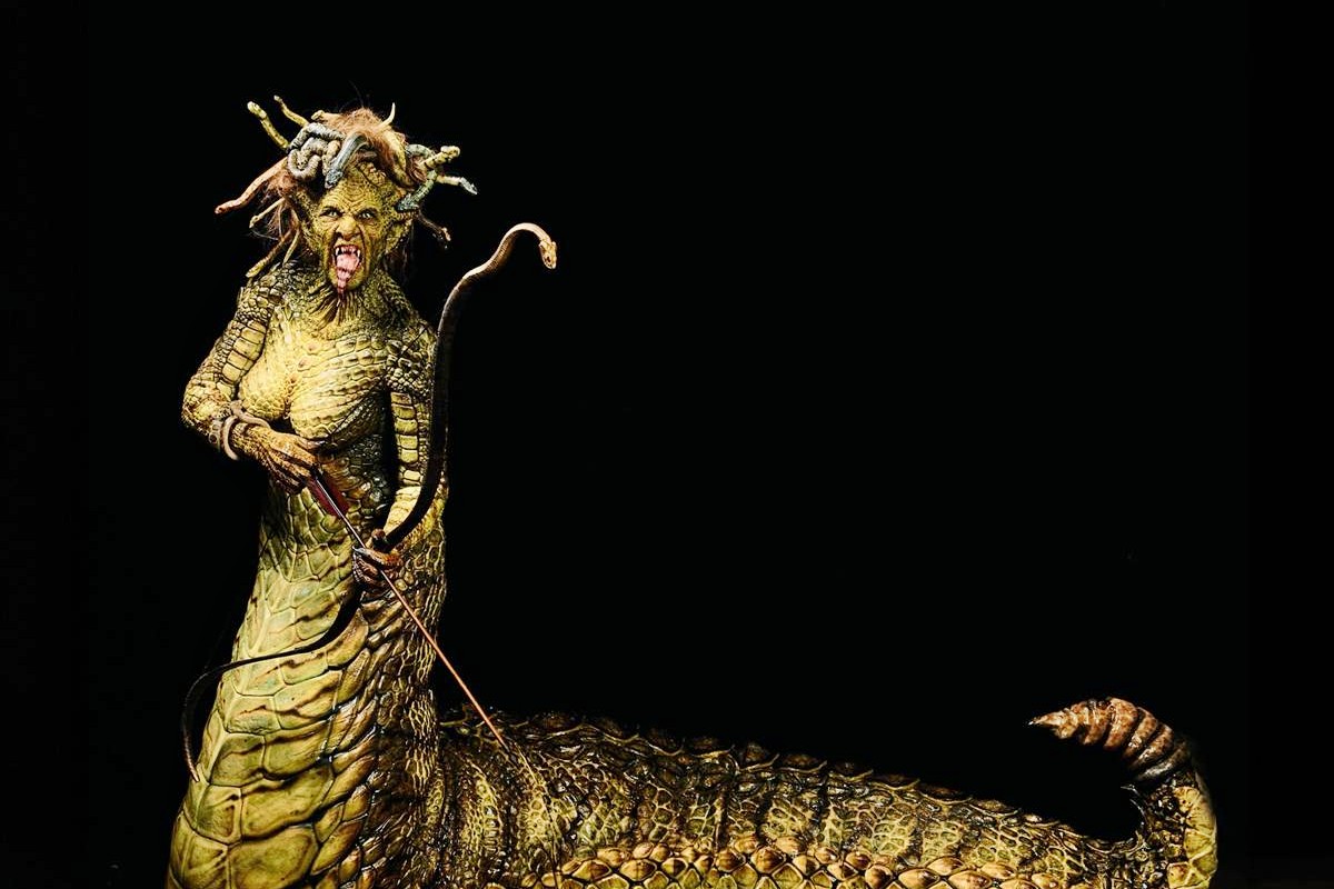 A modelo Heidi Klum é famosa pelas produções extremamente trabalhadas que veste em sua famosa festa anual de Halloween. Cada vez mais ousada, ela apostou desta vez em um visual total inspirado na figura mitológica da Medusa, com direito a cauda e tudo.