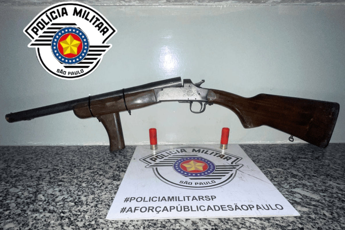 O carro foi revistado e foi encontrada uma espingarda calibre 12 municiada no assoalho do passageiro. O abordado admitiu ser o proprietário da arma, no entanto, negou os disparos.