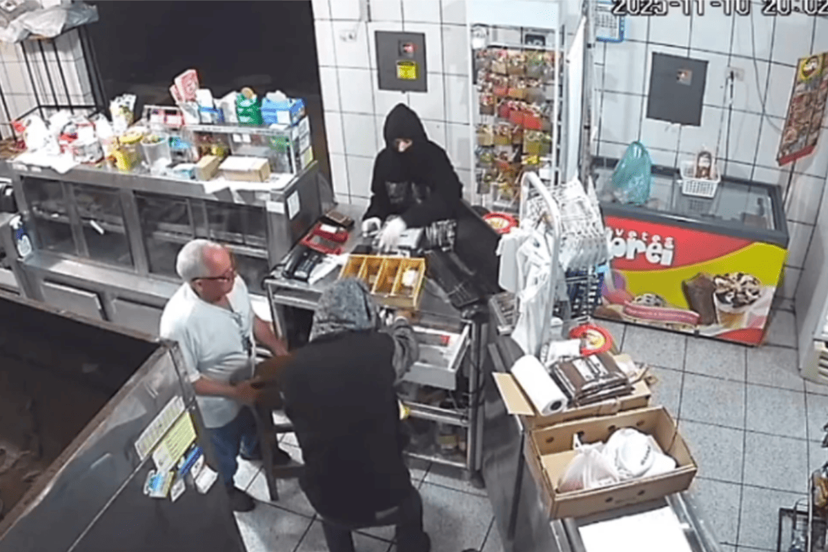 Um possível terceiro envolvido está foragido. Junto ao casal preso, a polícia apreendeu três facas, uma blusa preta que teria sido utilizada no crime, drogas e parte do dinheiro roubado do estabelecimento.