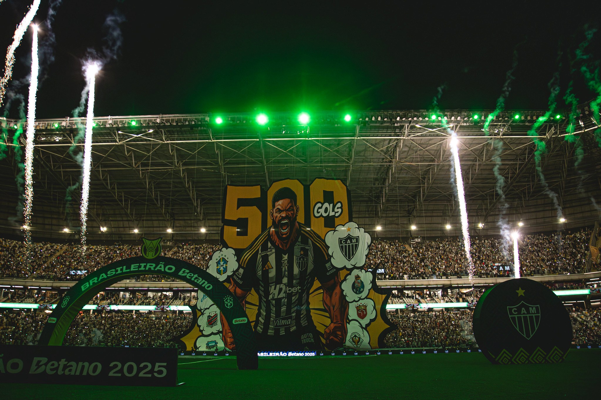 Antes do apito inicial na capital mineira, o Atlético-MG preparou um mosaico na Arena MRV. Na imagem aparece um desenho de Hulk e o número 500, em referência à marca alcançada pelo jogador, que balançou as redes 501 vezes na carreira.