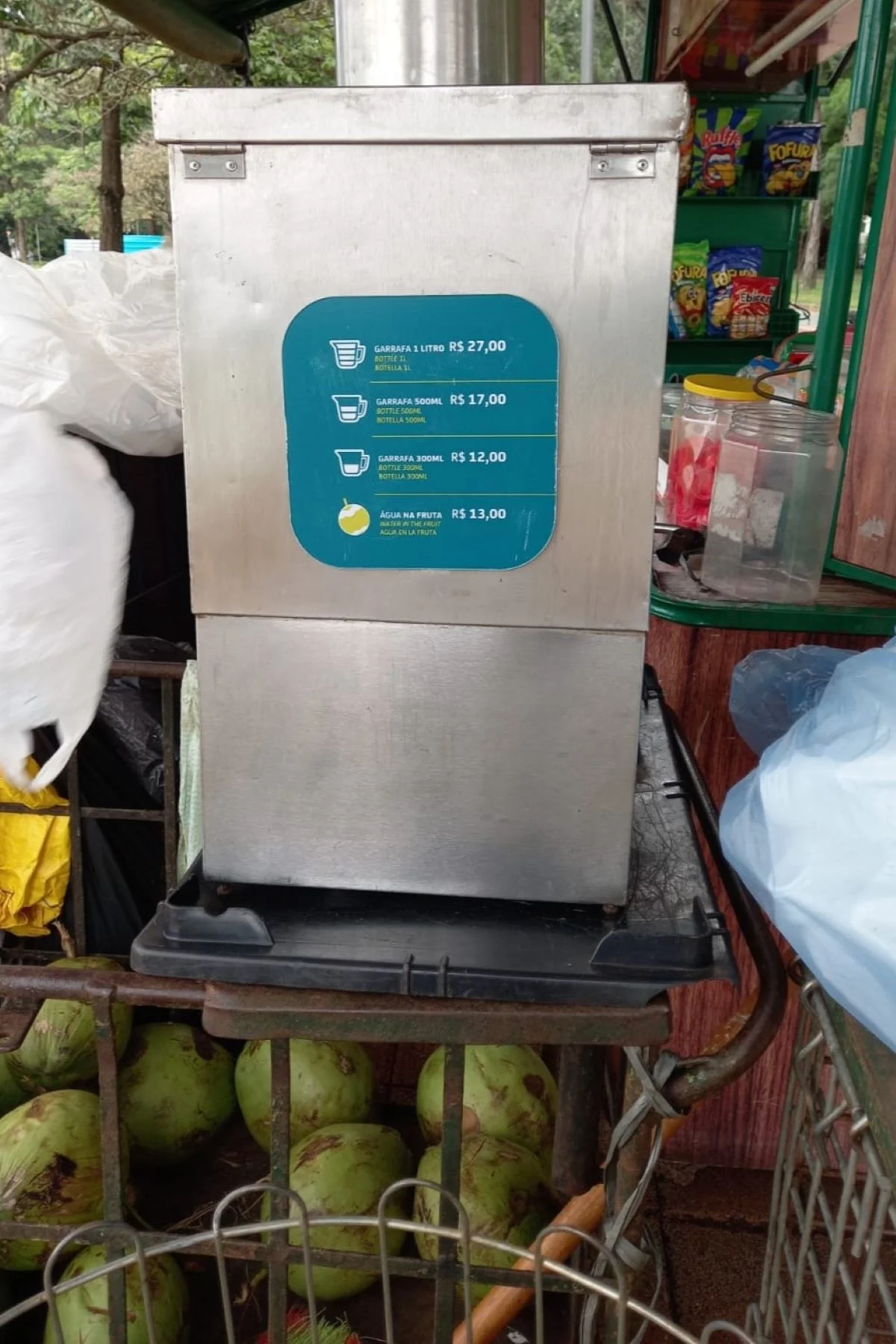 Imagem mostra carrinho de água de coco no Parque Ibirapuera, em São Paulo