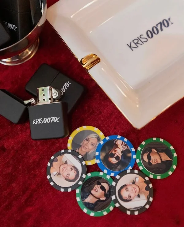 Nas publicações, Jenner surgiu usando um vestido vermelho vibrante — nada discreto para uma espiã secreta. Detalhes personalizados deram o tom da comemoração: fichas de pôquer com o rosto da aniversariante e isqueiros com a inscrição “KRIS0070” faziam parte da decoração temática.