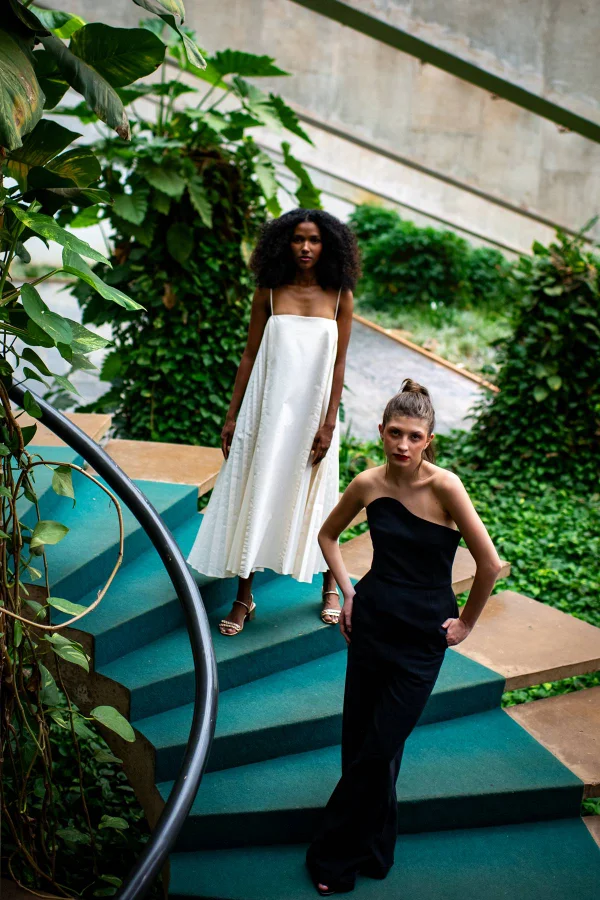 Harmonizando nobreza natural em texturas e silhuetas, os tecidos escolhidos para as peças foram o linho com seda e organzas suaves, sob o olhar artesanal e autoral da estilista e dona da marca, Louback. Para o Metrópoles Catwalk, cinturas marcadas, blazers estruturados e saias amplas são as peças que celebram a beleza que não se apaga com o tempo.