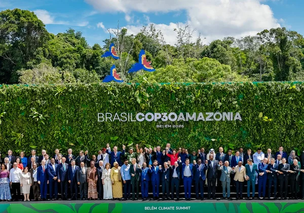 O presidente Luiz Inácio Lula da Silva (PT) com líderes mundiais na foto oficial da Cúpula do Clima, que antecede a COP30 em Belém
