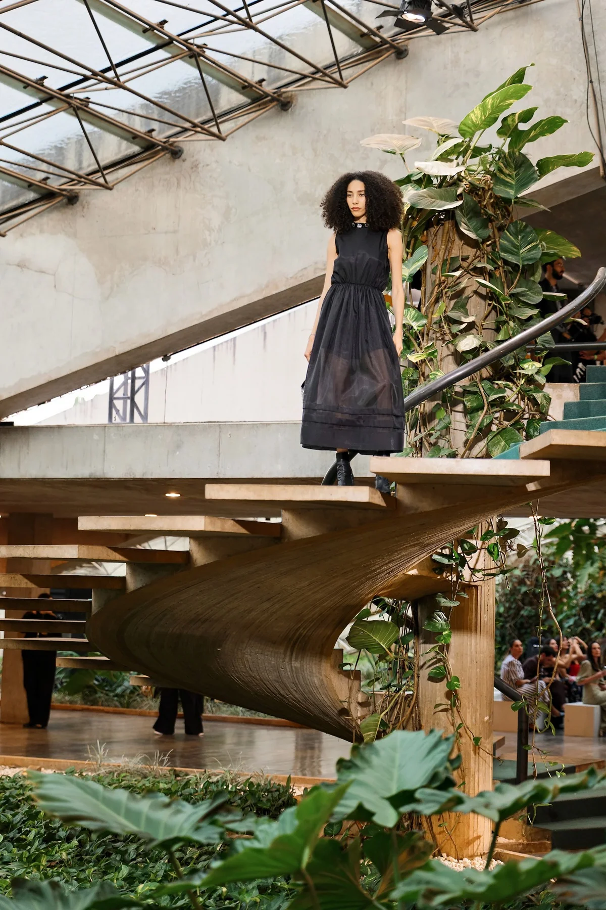 Já a etiqueta homônima Letícia Gonzaga, ofereceu um olhar contemporâneo sobre a feminilidade em movimento, com peças peças que transitavam entre o clássico e o despretensioso na coleção Voyage. Como parte do elenco de modelos desfilando pela etiqueta, estava a curitibana Vivi Orth, que já passou pela passarela de marcas como Balenciaga, Dior, Louis Vuitton e Alexander McQueen.