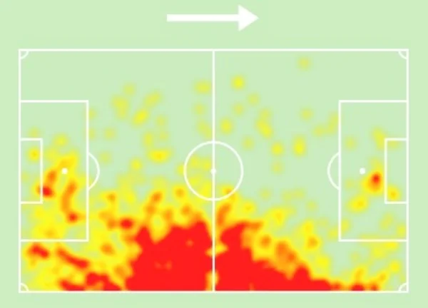 Mapa de calor de Éder Militão no Brasileirão de 2018