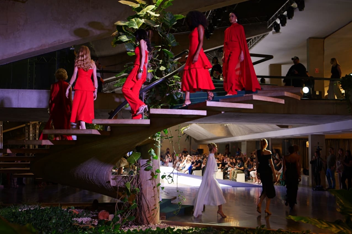 No segundo bloco, às 18h30, a multimarcas Amek dedicou sua seleção às celebrações de fim de ano, apostando em peças elegantes e versáteis. Logo depois, a Miwa mostrou a coleção-cápsula “transmutação do ser”.