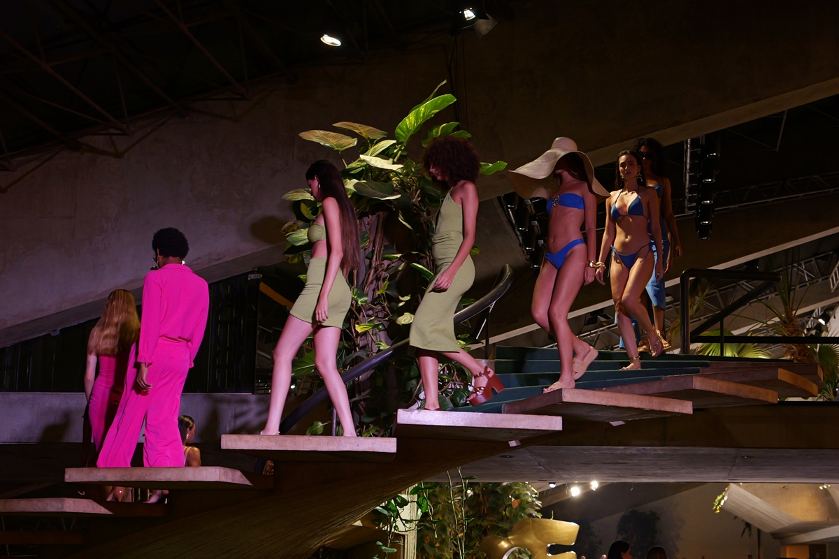 A partir das 17h, os desfiles assumiram o centro dos holofotes. No primeiro bloco, a etiqueta de beachwear Lago apresentou peças que transitam com naturalidade entre praia e cidade. Em seguida, a Veertien ocupou a passarela com sua estética streetwear.