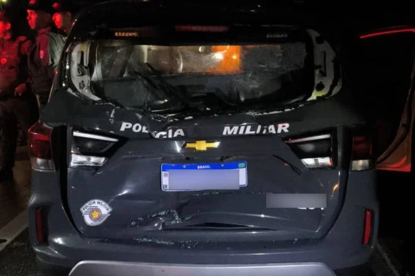 De acordo com a Secretaria da Segurança Pública (SSP), com o impacto, os policiais foram arremessados contra uma segunda viatura.