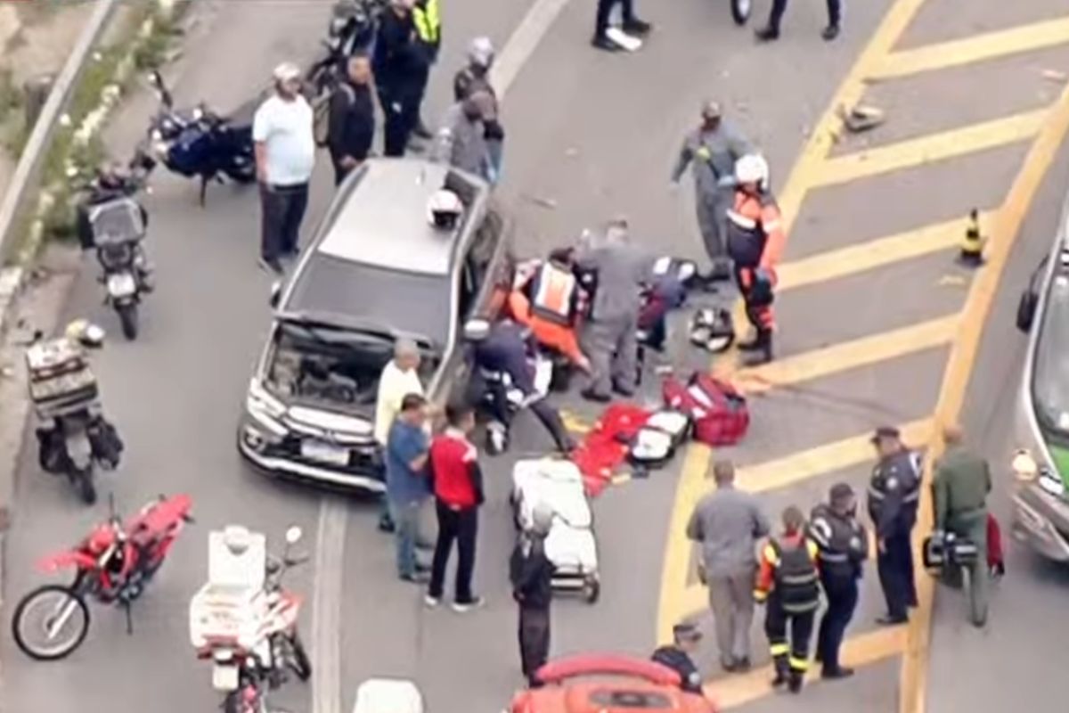 Um motociclista ficou gravemente ferido na tarde desta segunda-feira (24/11) após um acidente entre uma moto e um carro na Avenida Raimundo Pereira de Magalhães, em Pirituba, zona norte de São Paulo. Com o impacto, o piloto foi parar embaixo do veículo e entrou em parada cardiorrespiratória.