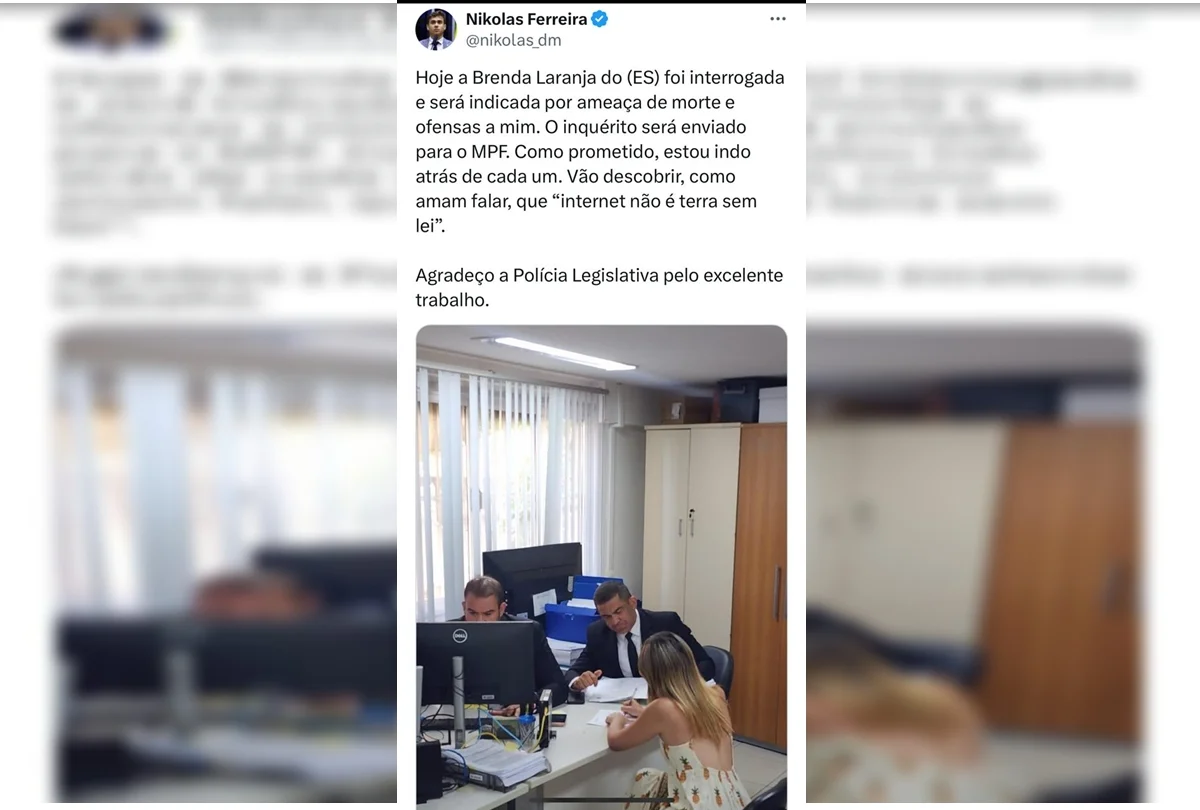 A Polícia Legislativa Federal (PLF) da Câmara dos Deputados concluiu a investigação sobre a ameaça de morte feita ao deputado federal Nikolas Ferreira (PL-MG) nas redes sociais e identificou autora das mensagens contra o parlamentar.