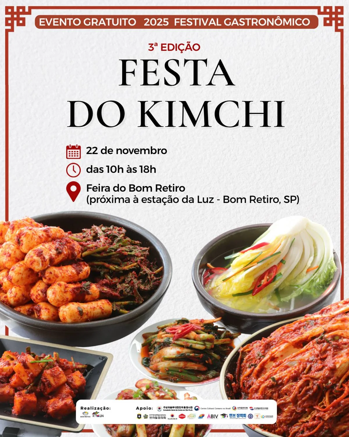 A terceira edição da Festa do Kimchi, em homenagem ao Dia do Kimchi, um símbolo da culinária e da tradição coreana reconhecida pela UNESCO como Patrimônio Cultural Imaterial da Humanidade será no Bom Retiro neste sábado.