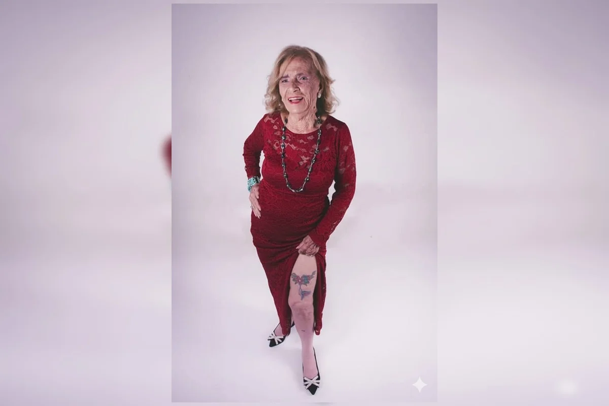 Vó Pifa aos 102 anos, quando recebeu o prêmio de mulher mais velha da América Latina a fazer uma tatuagem