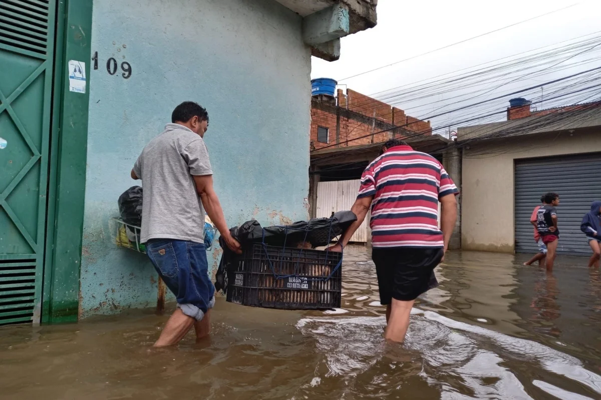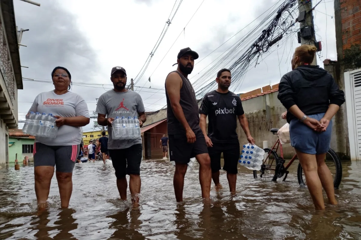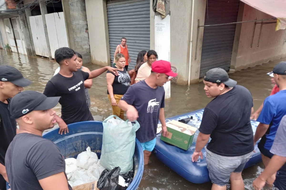 Moradores distribuem água e colchões para vítimas mais afetadas pela chuva