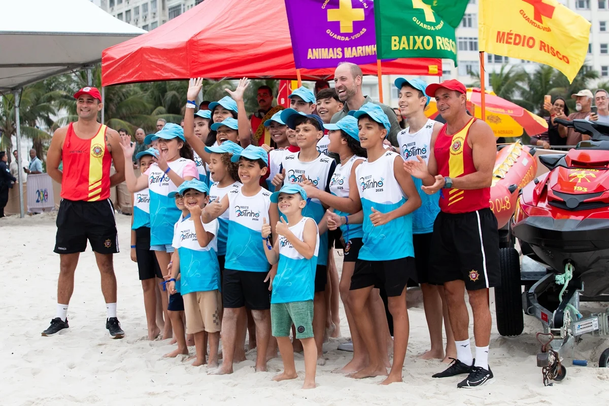 O futuro monarca do Reino Unido com crianças do Projeto Botinho, do Rio