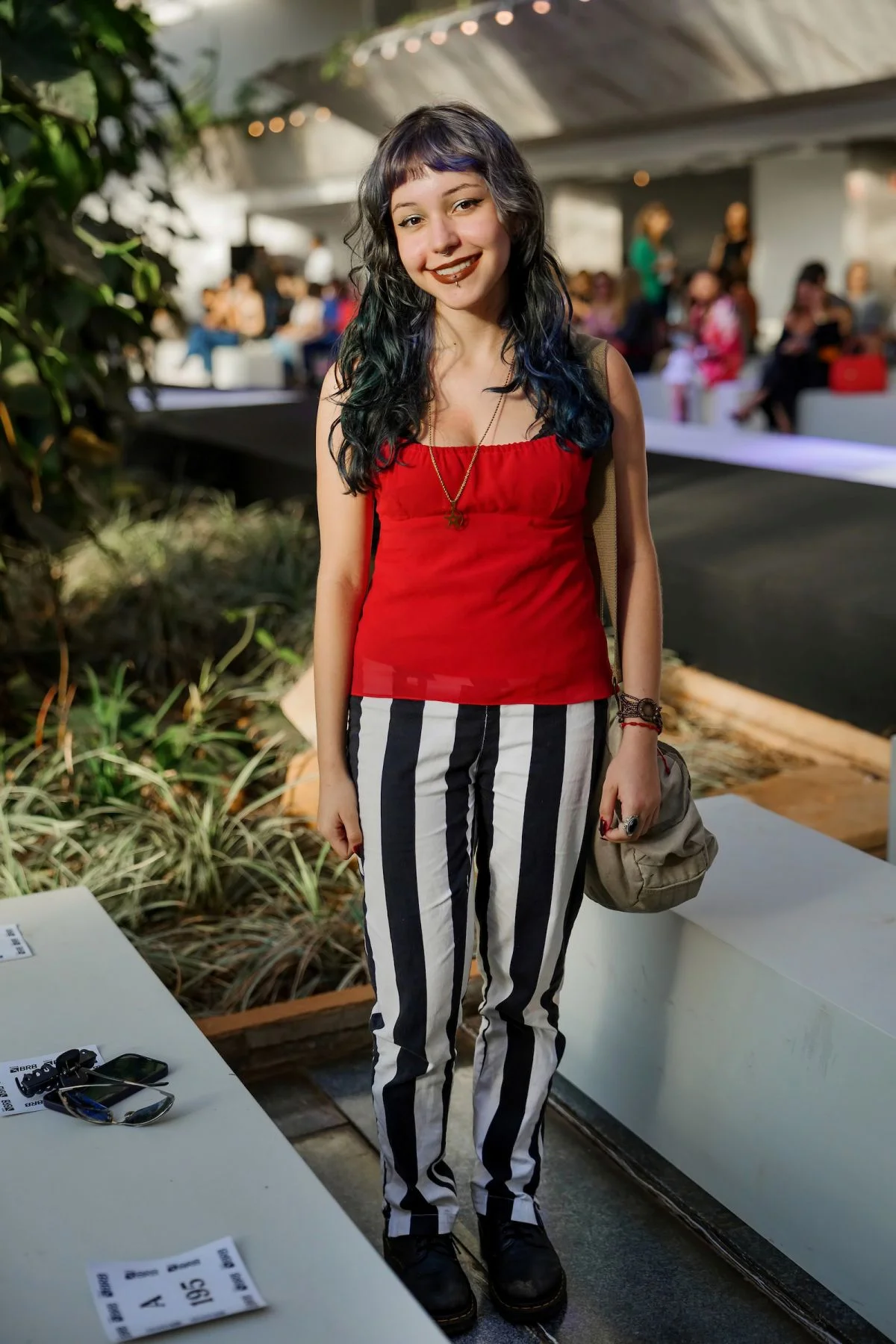 Entre as mulheres, diferentes abordagens — da mais moderna às produções com detalhes românticos e girlie. Nos visuais masculinos do público, destacaram-se as calças com modelagem baggy em diferentes tecidos, tendência que vem se firmando no mercado. Do jeans às opções alfaiatadas, surgiram sobreposições com ar street, além de estampas multicoloridas e texturas que acrescentam um diferencial a visuais com estilo retrô e festivo.