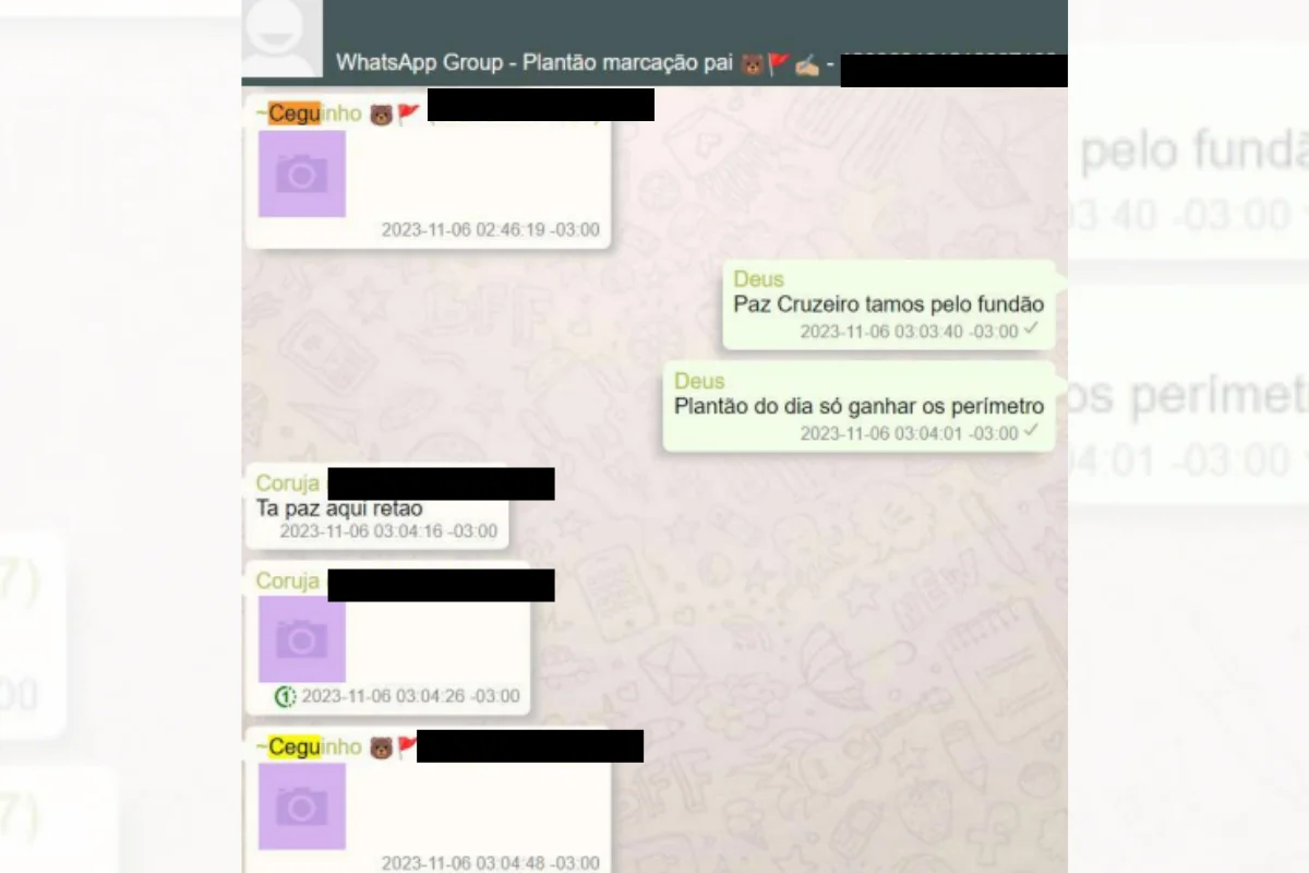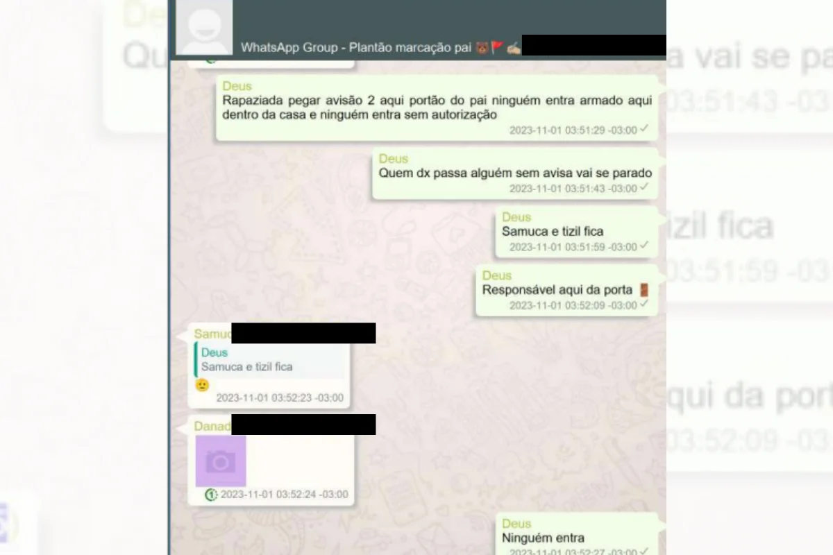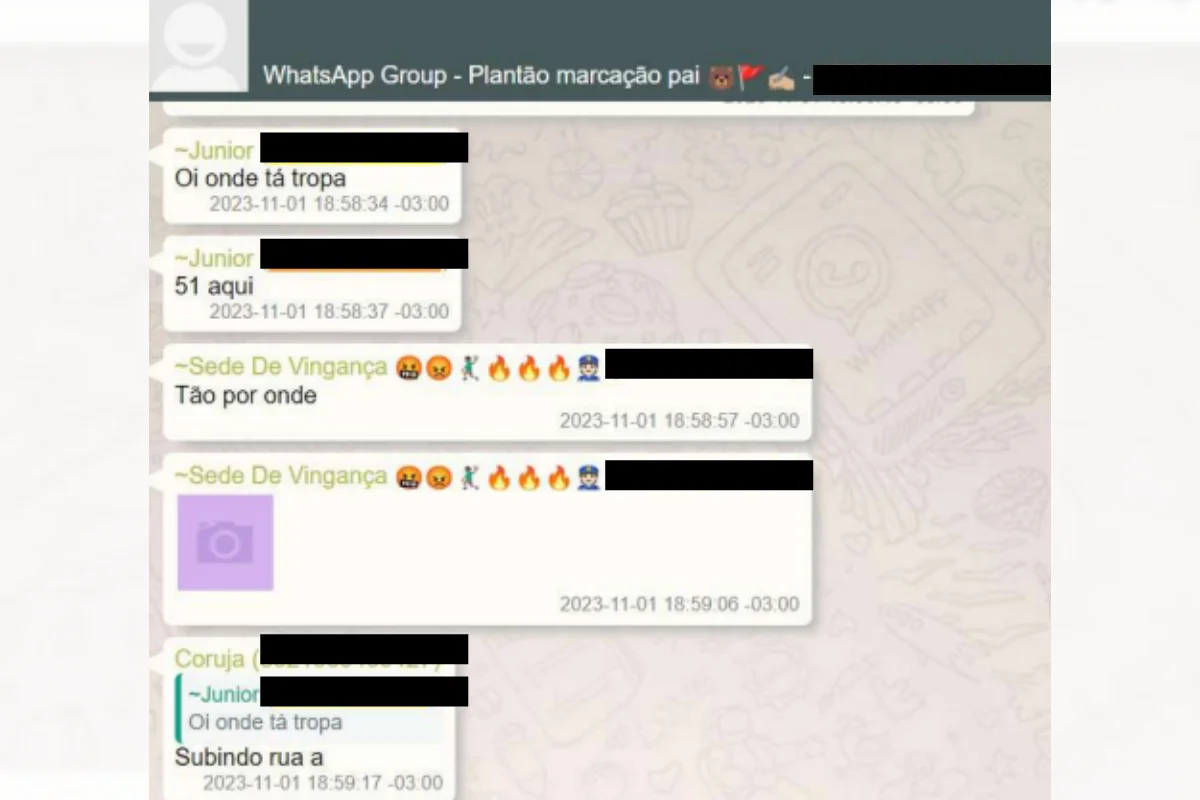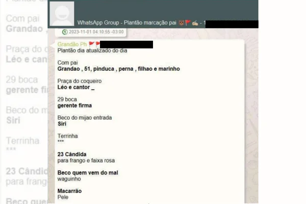 “Conforme já destacado os grupos de Whatsapp são criados, não apenas para comunicação entre os integrantes, mas, mais do que isso, para a gestão da facção criminosa, estando todos os integrantes associados a mesma. Nestes grupos, os líderes do tráfico emitem ordens de caráter geral, ordens sobre a comercialização de drogas para os subordinados, determinam as escalas de plantões, sejam em pontos de comercialização de drogas (bocas), pontos de visão (monitoramento) ou pontos de contenção (segurança armada). Também chamam atenção de seus subordinados, falam sobre veículos roubados, monitoramento de viaturas policiais, contabilidade das vendas de drogas e até sobre a execução (morte) de rivais”, diz trecho do documento, enviado à justiça no início de 2025.