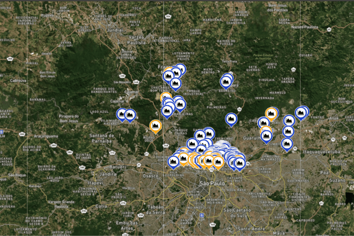 Atualmente, estão instalados 315 sensores na cidade de São Paulo. Eles cobrem mais de 150 bairros da capital, em regiões populosas e de importantes atividades econômicas, como centros comerciais, hospitais, escolas e atrações turísticas.