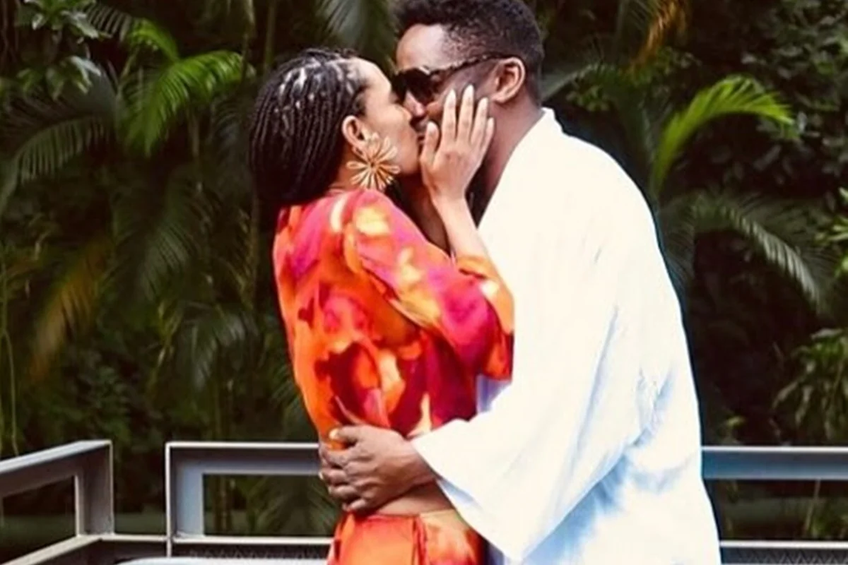Lázaro Ramos e Taís Araújo posam durante viagem