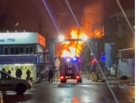 Imagens de vídeo no Telegram mostraram chamas e fumaça preta subindo para o céu noturno a partir da estação de energia. A Reuters conseguiu confirmar o local, mas não a data do vídeo.