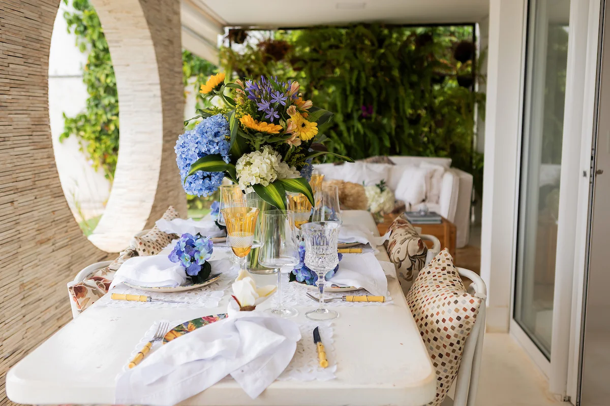 Vanessa destaca que sempre gostou de realizar celebrações em sua casa em torno do clima de primavera. “Não sei se é porque eu nasci na primavera, e a Cleucy também, mas pensei nesse momento primaveril, descontraído, para dançarmos e brindarmos a vida. Todo mundo estava na mesma energia. Foi uma tarde agradável, gostosa, íntima e divertida”, acrescenta.