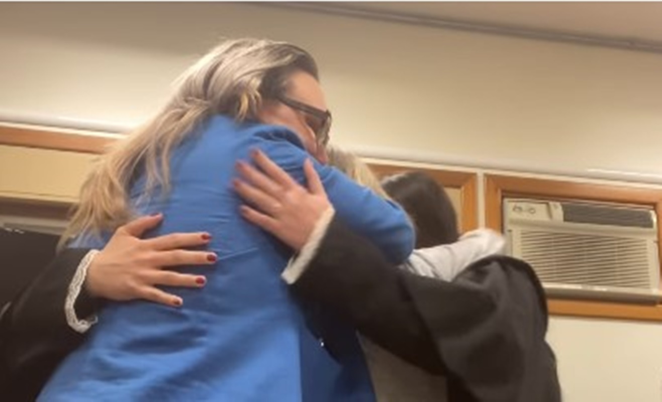 Ao fim do vídeo, é possível ver o momento em que a advogada abraça a ré após a decisão de absolvição das acusações.
