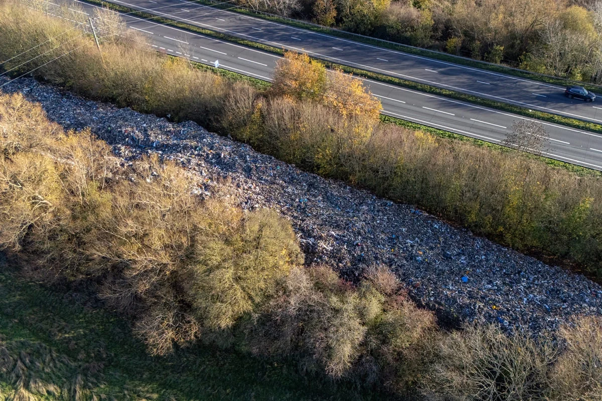 O lixo foi jogado em um campo entre o rio Cherwell e uma rodovia na região de Oxfordshire, a cerca de 80 km de Londres. Ainda não se sabe quem despejou a pilha de lixo triturado no local, mas ambientalistas e políticos apontam para ação de um ou mais grupos do crime organizado.
